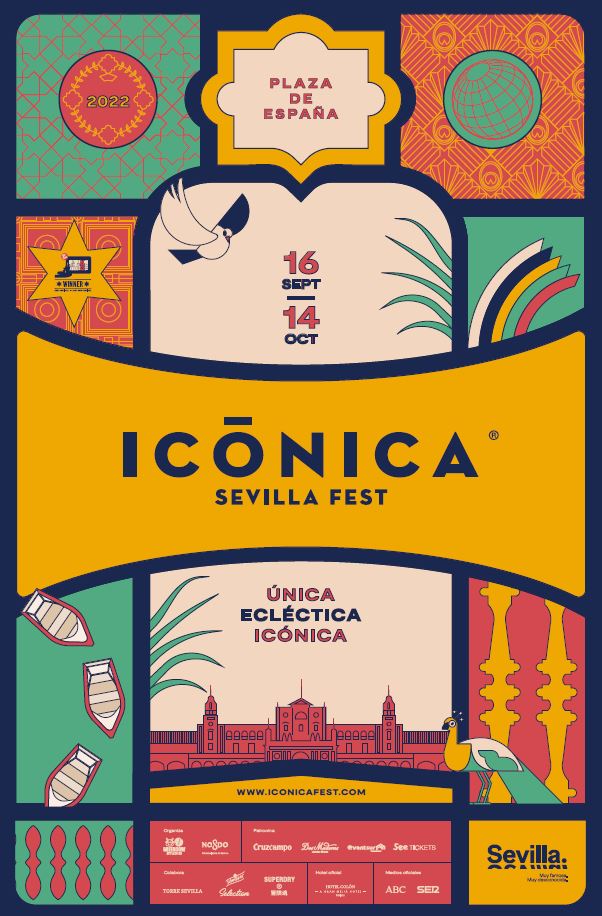 ICÓNICA Sevilla Fest, organizado por Green Cow Studio junto al Ayuntamiento de Sevilla, cuenta con el patrocinio de Cruzcampo, Ron Dos Maderas, Eventsur, Mesoestetic y See Tickets, canal de venta oficial, y la colaboración de Sevilla City Office, Schweppes, Jack Daniel's, Adecco, Aromas, Superdry, Torre Sevilla y Robles Restaurantes. Además, en esta edición 2022 encontramos a “Agua de Sevilla” como aroma oficial del Festival, RENFE como transporte oficial del Festival, el Hotel Colón de Gran Meliá (Sevilla) y el Hotel Meliá Sevilla como alojamientos oficiales, y ABC, Cadena SER y JOLY Digital como medios oficiales.
