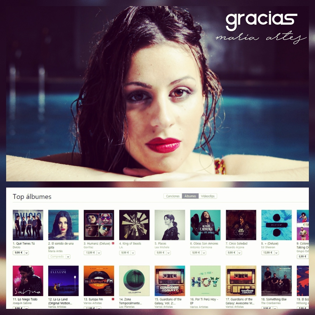Hoy 28 Abril ha salido a la venta “El Sonido De Una Gota”, el tercer disco de estudio de María Artés y gracias a todos se ha situado el 2º Disco Más Vendido en plataformas digitales.